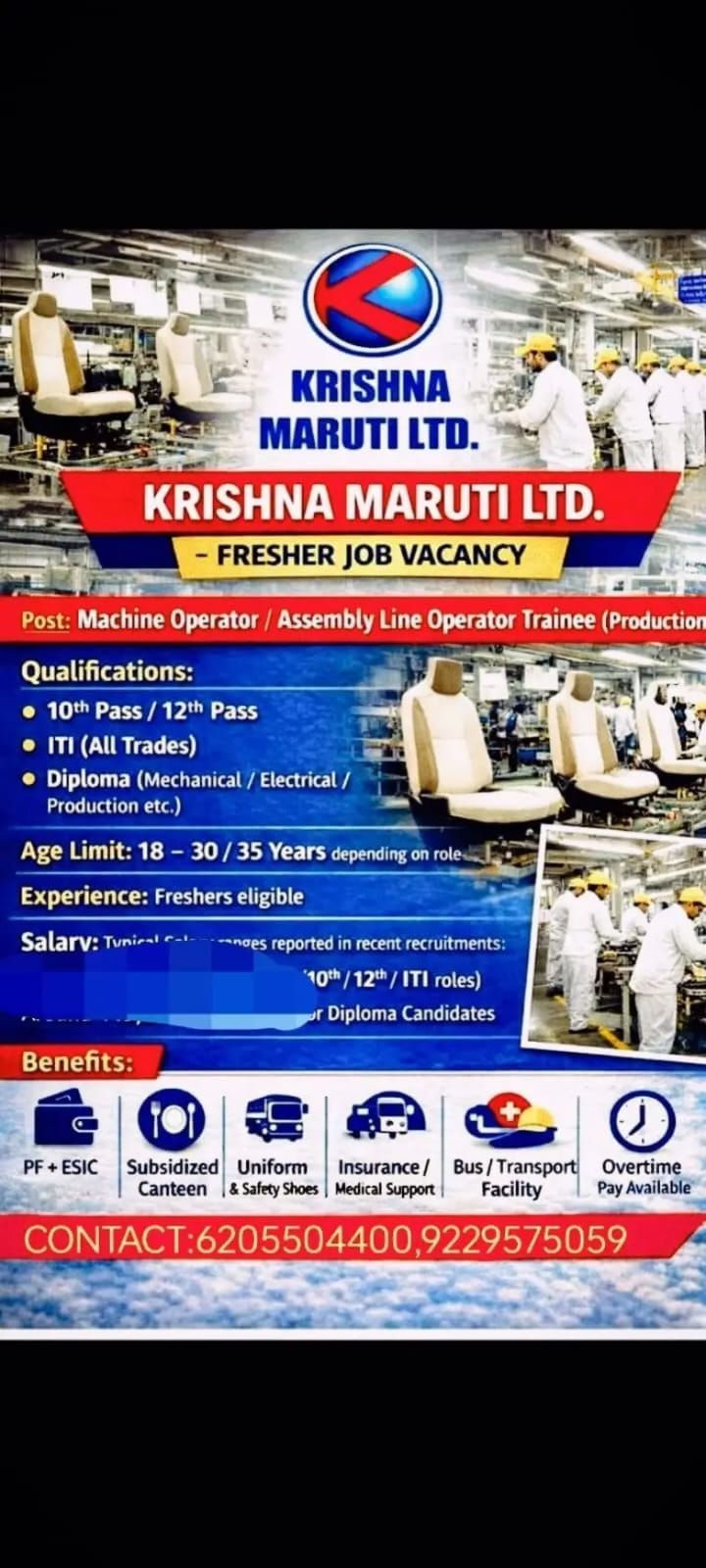 Krishna Maruti Ltd. is hiring candidates for operator roles.
