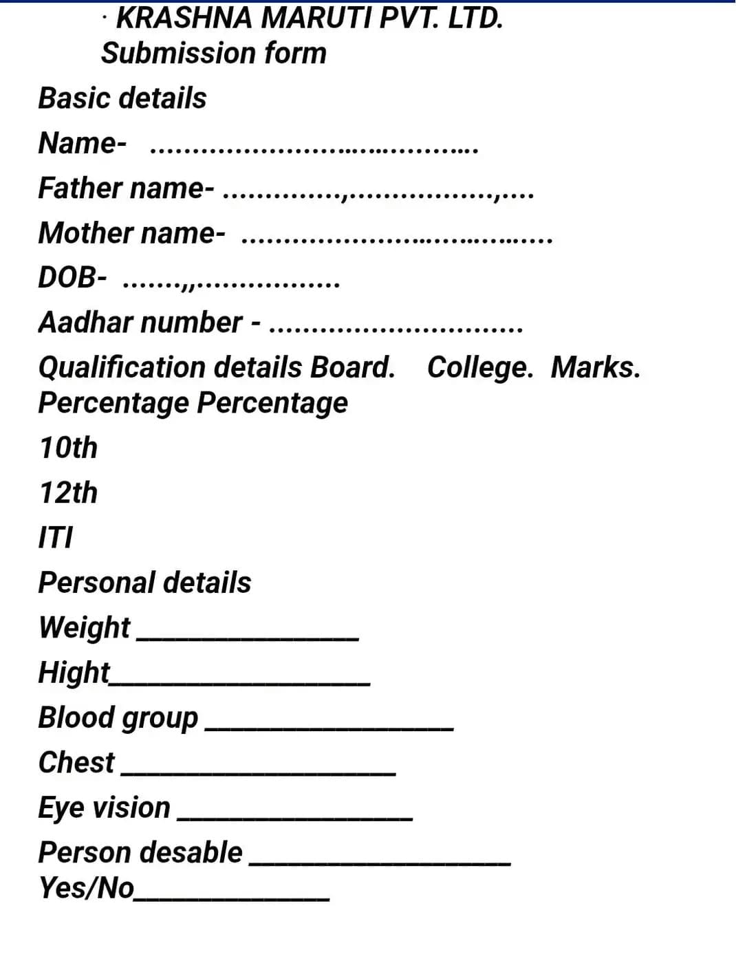 Krishna Maruti Company Bharti 2026 – Candidate Eligibility Details